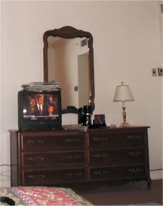 Hotelkamer met Dubya op TV