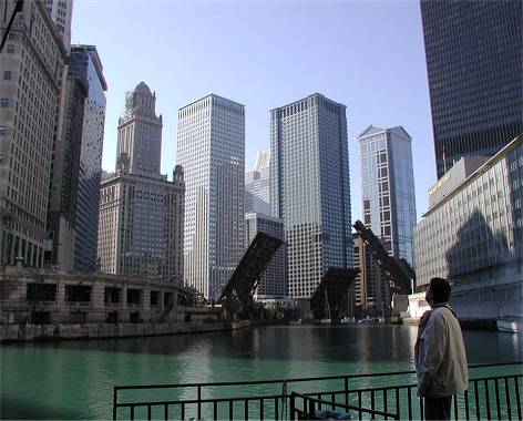 rechterkant het Sun-Times-gebouw en daarachter IBM. Links een